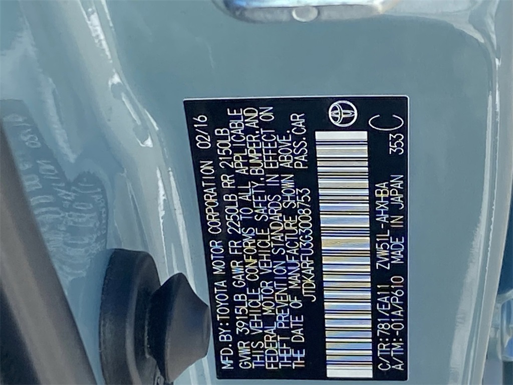 - VIN : JTDKARFU3G3008753