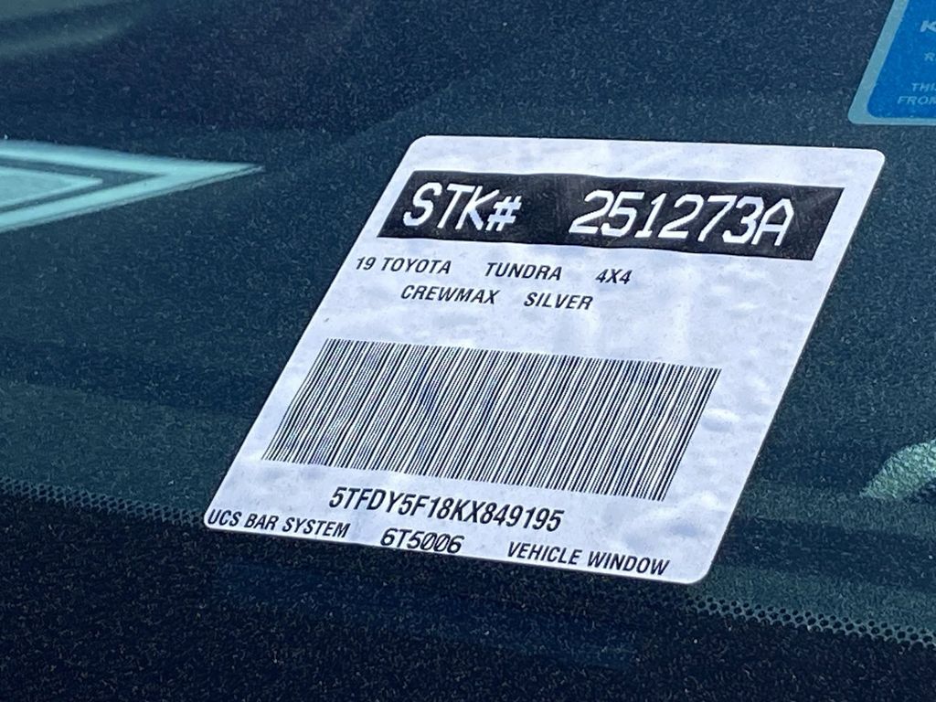 Looks and runs great. Good tires and brakes. Engine and transmission run smooth. Damage free. Immaculate inside and out. FREE CARFAX! We have great interest rate and financing for ALL credit situations.. Special 2019 Toyota Tundra SR5 4WD 6-Speed Automatic Electronic 5.7L 8-Cylinder SMPI DOHC 4WD, Black w/Fabric Seat Trim, ABS brakes, Active Cruise Control, Compass, Electronic Stability Control, Heated door mirrors, Illuminated entry, Low tire pressure warning, Remote keyless entry, Traction control.