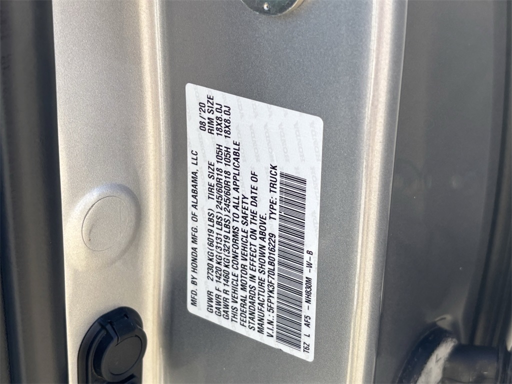 - VIN : 5FPYK3F70LB016229
