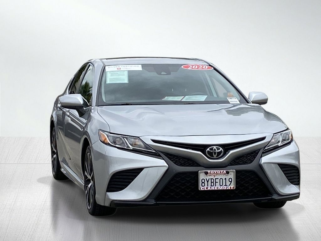 Looks and runs great. Good tires and brakes. Engine and transmission run smooth. Damage free. Immaculate inside and out. FREE CARFAX! We have great interest rate and financing for ALL credit situations.. Celestial Silver Metallic 2020 Toyota Camry SE FWD 8-Speed Automatic 2.5L I4 DOHC 16V Black Cloth.