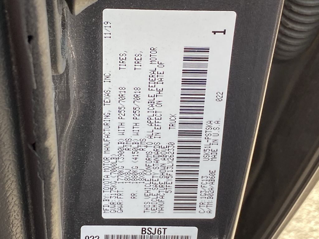 - VIN : 5TFEY5F13LX262330