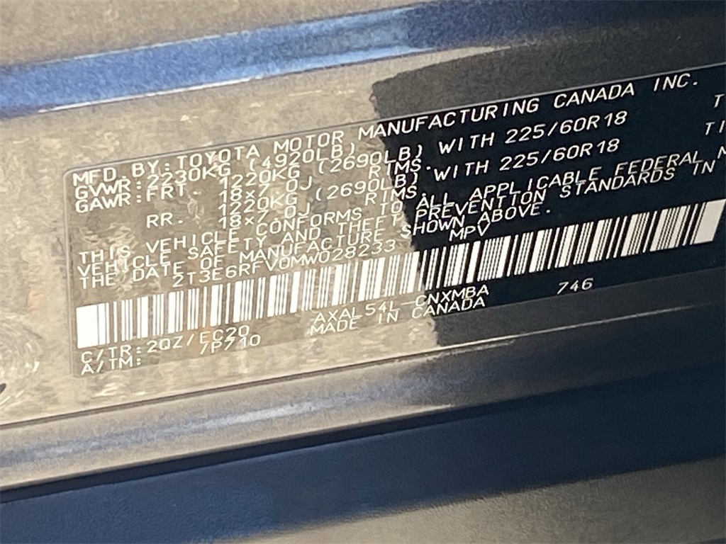- VIN : 2T3E6RFV0MW028233