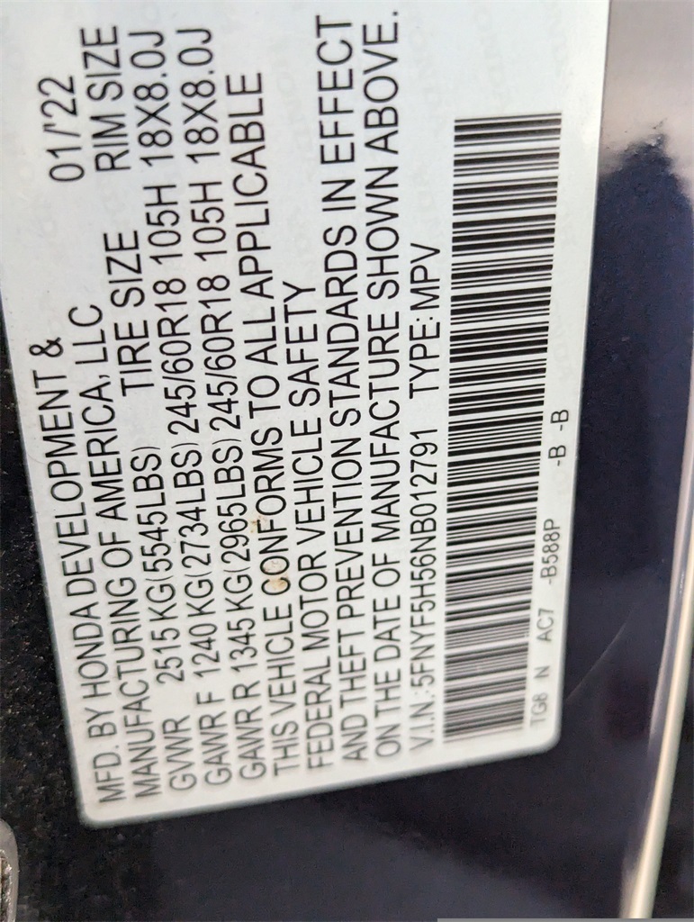 - VIN : 5FNYF5H56NB012791