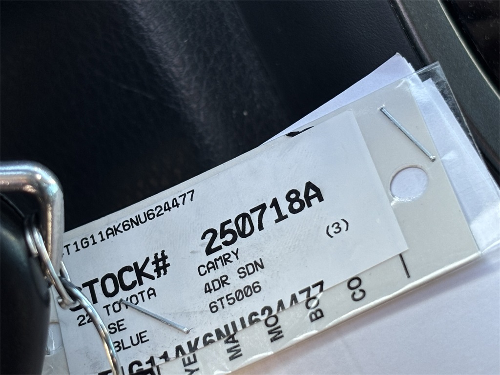 Looks and runs great. Good tires and brakes. Engine and transmission run smooth. Damage free. Immaculate inside and out. FREE CARFAX! We have great interest rate and financing for ALL credit situations.. Blueprint 2022 Toyota Camry SE FWD 8-Speed Automatic 2.5L I4 DOHC 16V Black w/Fabric Seat Trim.