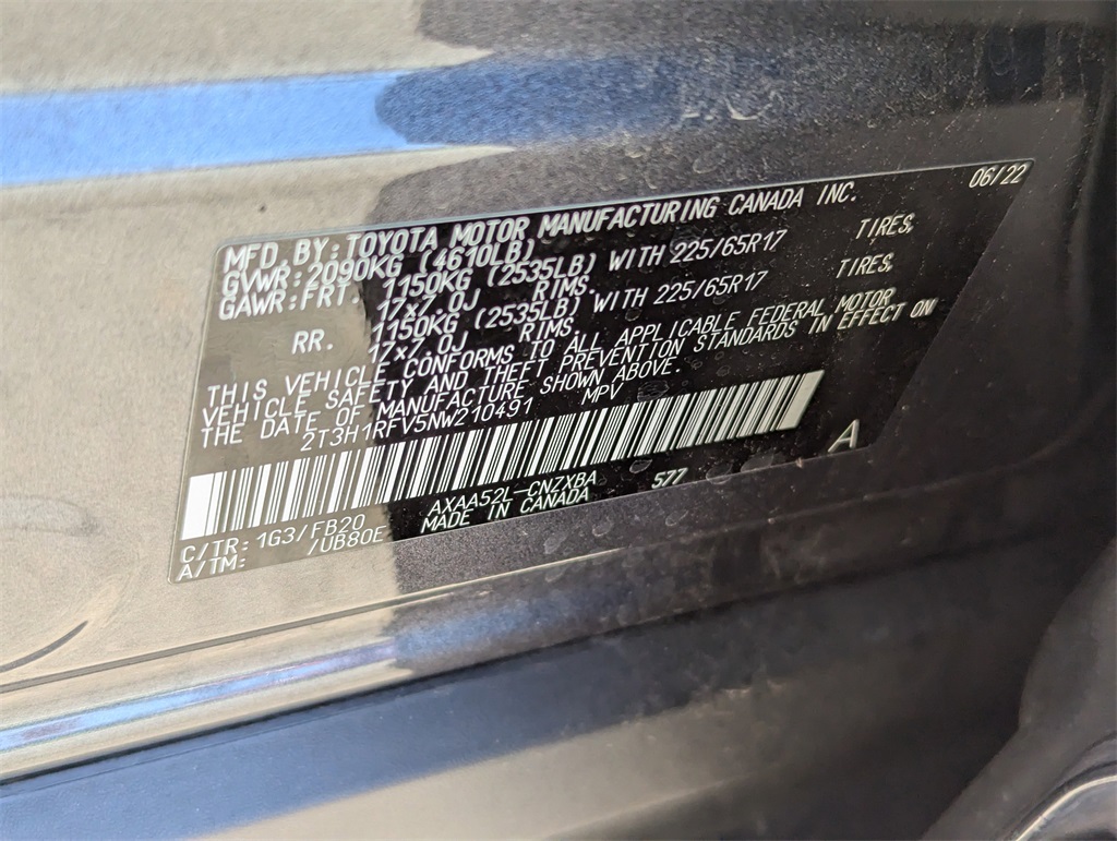 - VIN : 2T3H1RFV5NW210491