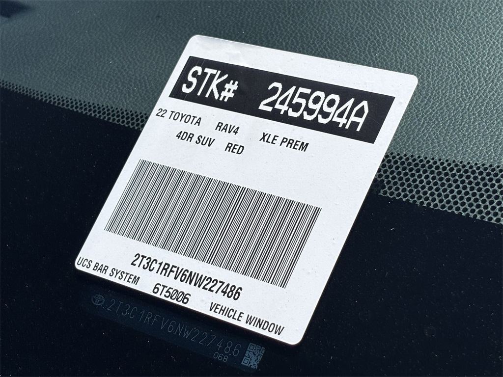 Looks and runs great. Good tires and brakes. Engine and transmission run smooth. Damage free. Immaculate inside and out. FREE CARFAX! We have great interest rate and financing for ALL credit situations.. Ruby Flare Pearl 2022 Toyota RAV4 XLE Premium FWD 8-Speed Automatic 2.5L 4-Cylinder DOHC Dual VVT-i Black w/SofTex Seat Trim, Cross Bars (TMS), Front Door Smart Key System w/Push Button Start, LED Front Fog & Driving Lamp, Tilt & Slide Moon Roof, XLE Premium Package.