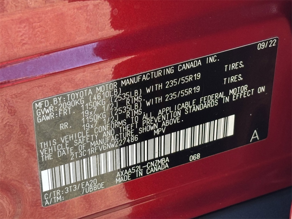 - VIN : 2T3C1RFV6NW227486