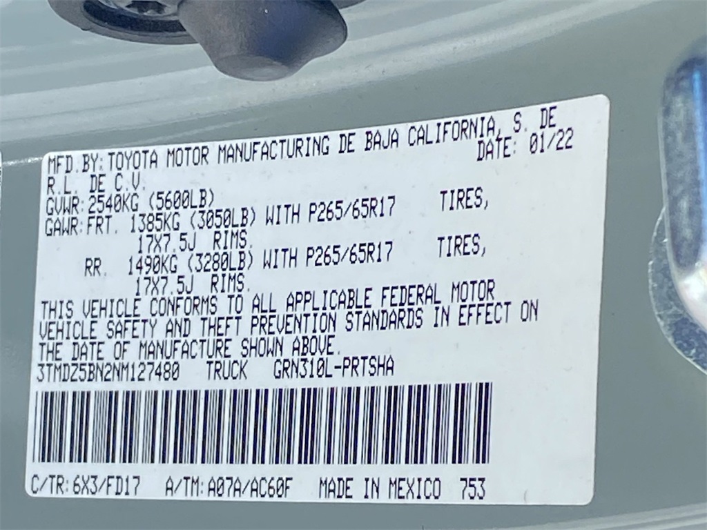 - VIN : 3TMDZ5BN2NM127480