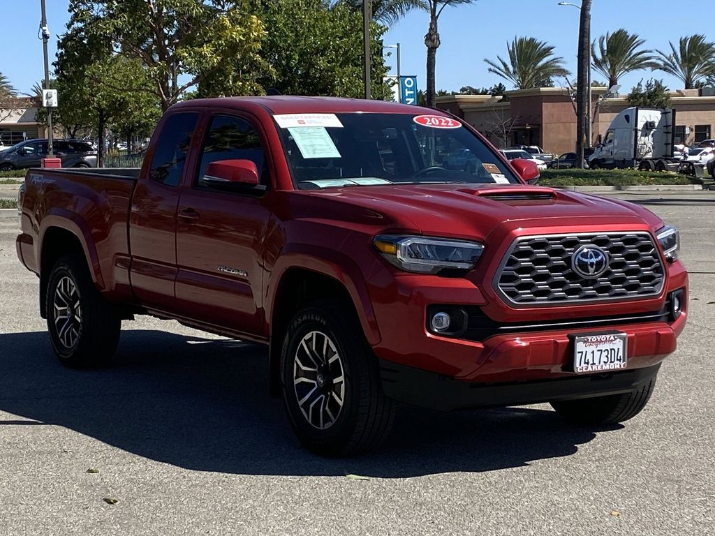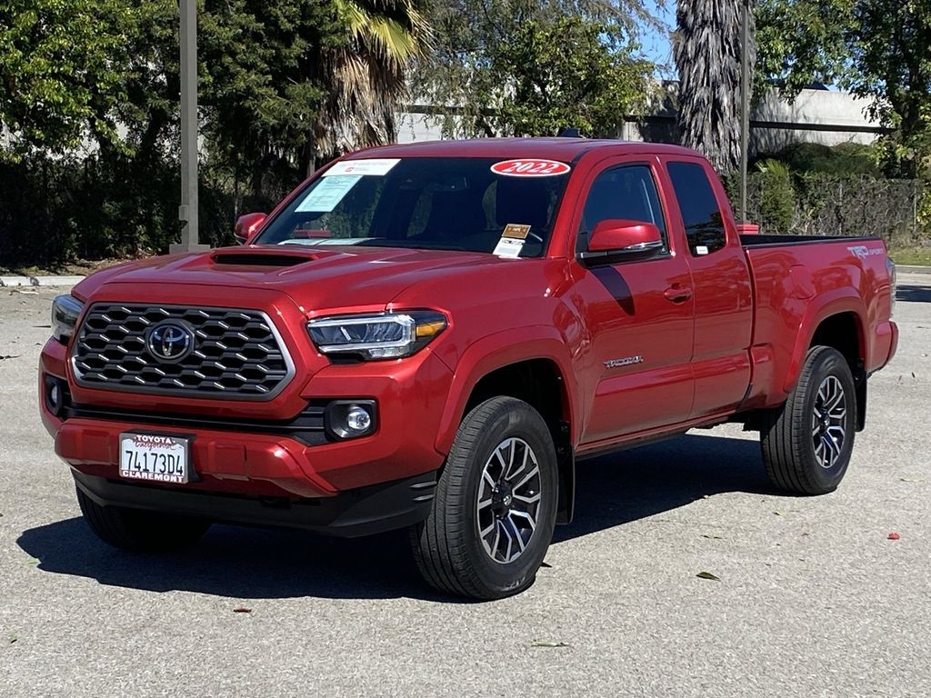 Looks and runs great. Good tires and brakes. Engine and transmission run smooth. Damage free. Immaculate inside and out. FREE CARFAX! We have great interest rate and financing for ALL credit situations.. Red 2022 Toyota Tacoma TRD Sport V6 RWD 6-Speed Automatic 3.5L V6 PDI DOHC 24V LEV3-ULEV70 278hp 120V/400W Deck Mounted AC Power, Auto-Dimming Rearview Mirror w/HomeLink, Color-Keyed Overfenders, Engine Immobilizer, Heated Front Seats, Mesh Front Grille, Radio: Premium w/AM/FM/Nav/App Suite, Smart Key w/Push Button Start, TRD Premium Sport Package.