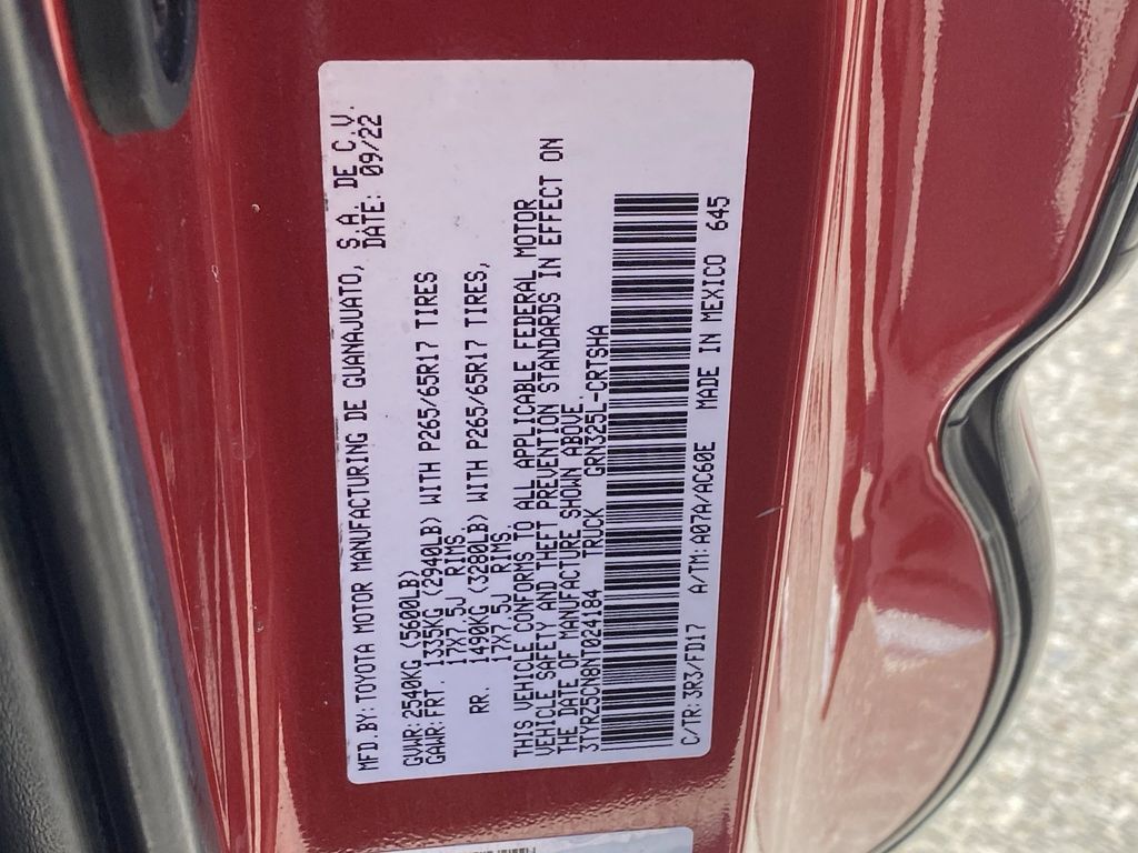 - VIN : 3TYRZ5CN8NT024184