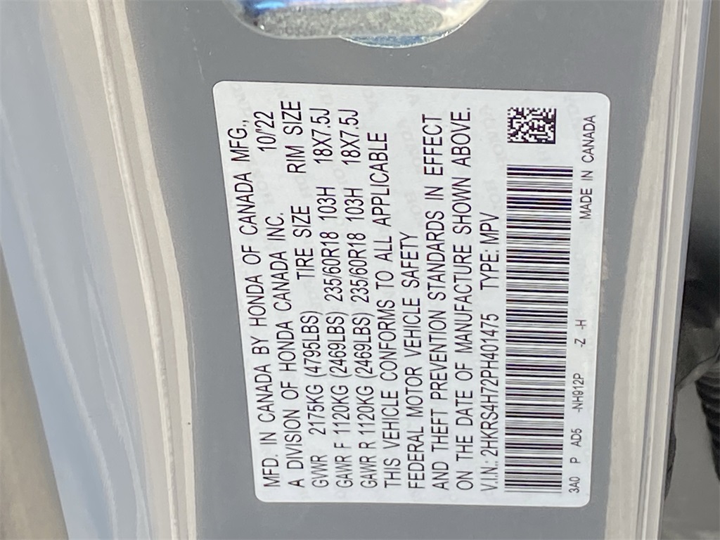 - VIN : 2HKRS4H72PH401475