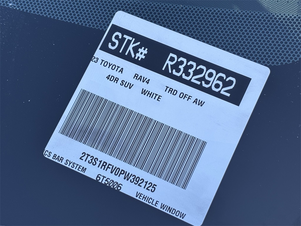 Looks and runs great. Good tires and brakes. Engine and transmission run smooth. Damage free. Immaculate inside and out. FREE CARFAX! We have great interest rate and financing for ALL credit situations.. White 2023 Toyota RAV4 TRD Off Road AWD 8-Speed Automatic 2.5L 4-Cylinder DOHC Dual VVT-i AWD, 3 Spoke Leather Heated Steering Wheel, All Weather Floor Mats w/Cargo Tray, Anti-Theft System, Front Door Smart Key System w/Push Button Start, Front Seat Heating/Ventilation, Luggage Holding Net, Rain Sensing Front Wipers, Tilt & Slide Moon Roof, TRD Off-Road Package, TRD Off-Road Weather Package.