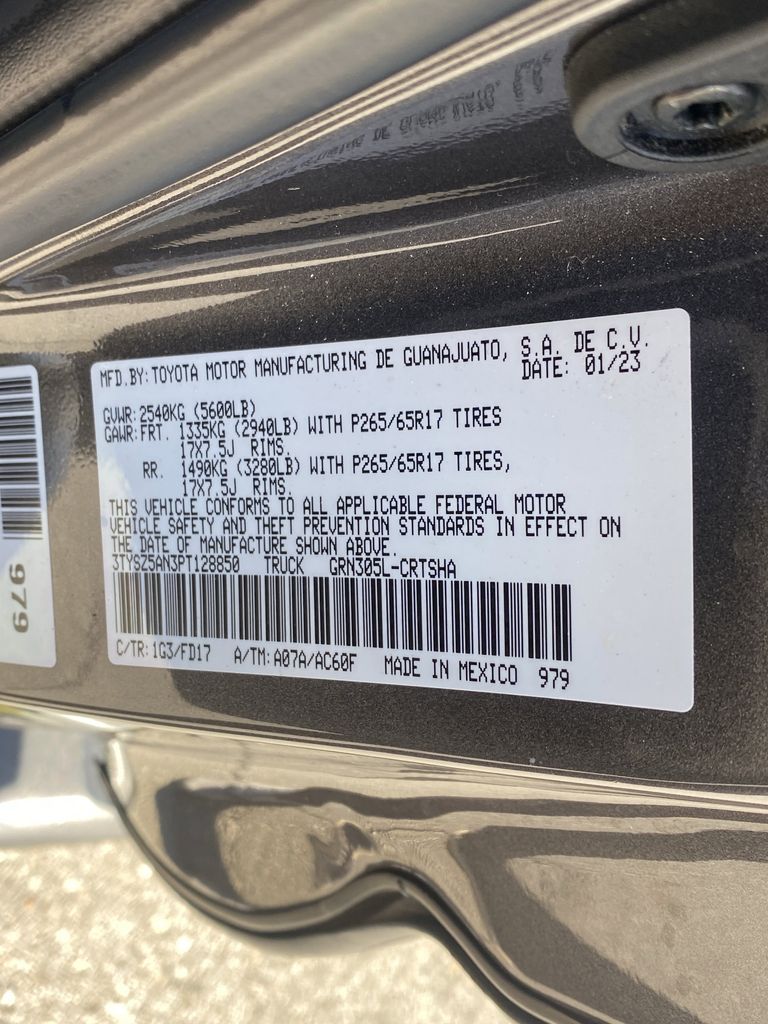 - VIN : 3TYSZ5AN3PT128850