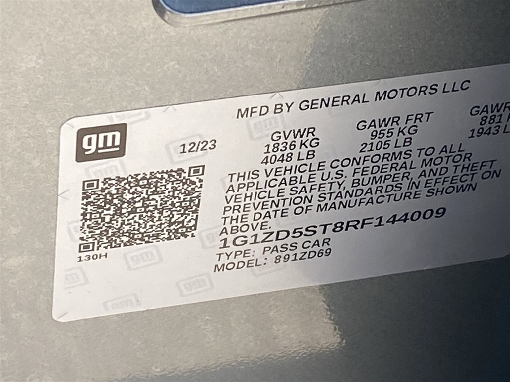 - VIN : 1G1ZD5ST8RF144009