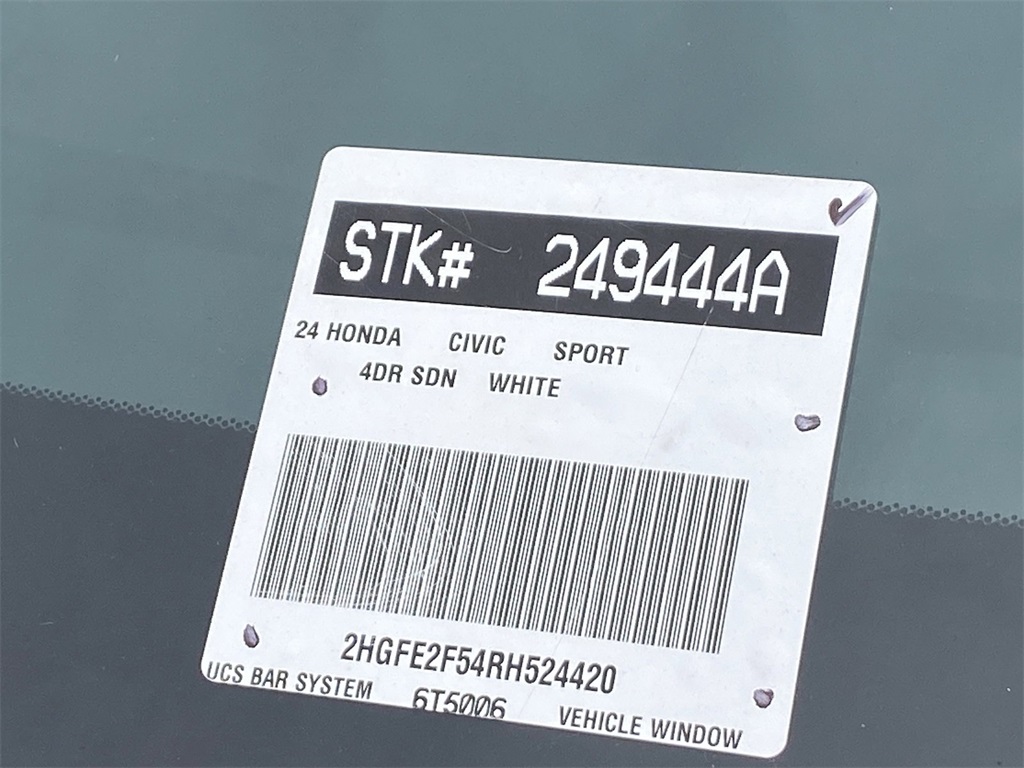 Looks and runs great. Good tires and brakes. Engine and transmission run smooth. Damage free. Immaculate inside and out. FREE CARFAX! We have great interest rate and financing for ALL credit situations.. White 2024 Honda Civic Sport FWD CVT 2.0L I4 DOHC 16V i-VTEC Black w/Cloth Seating Surfaces.