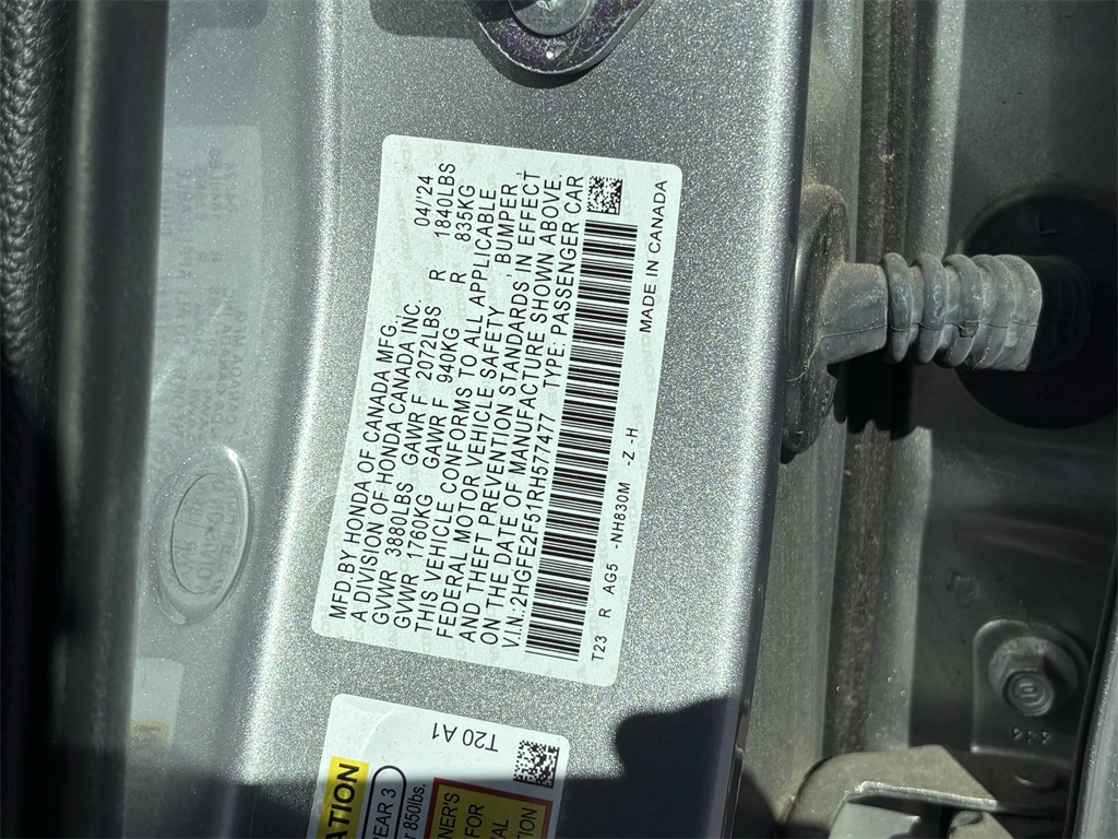 - VIN : 2HGFE2F51RH577477