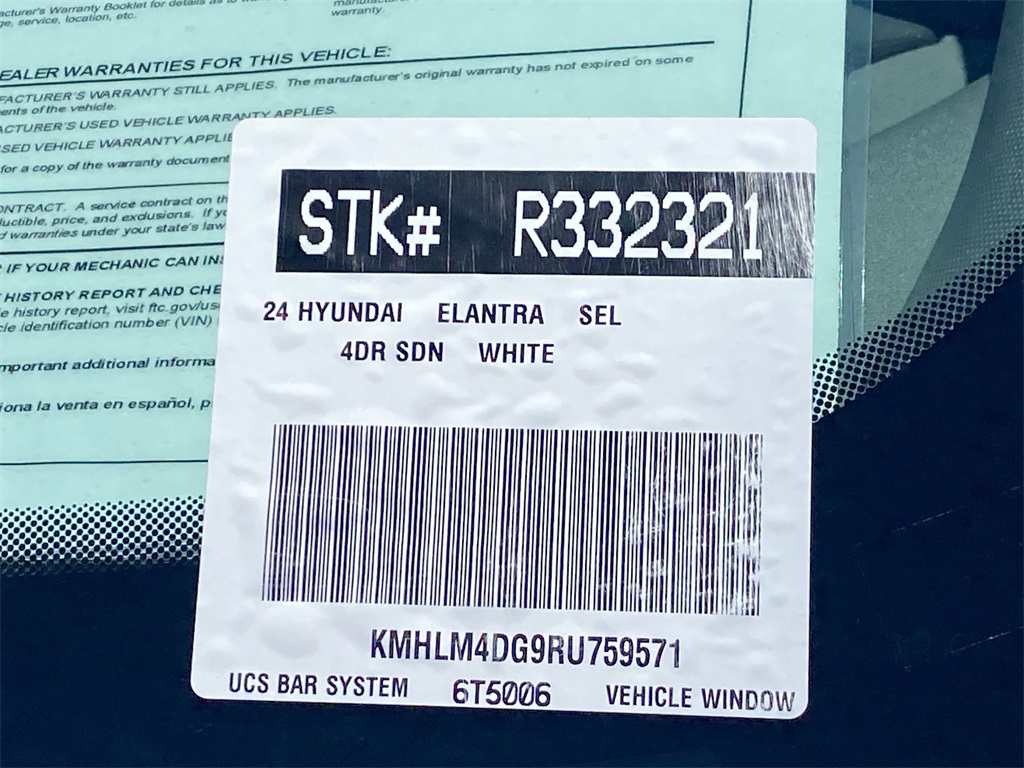 Looks and runs great. Good tires and brakes. Engine and transmission run smooth. Damage free. Immaculate inside and out. FREE CARFAX! We have great interest rate and financing for ALL credit situations.. Serenity White 2024 Hyundai Elantra SEL FWD CVT I4