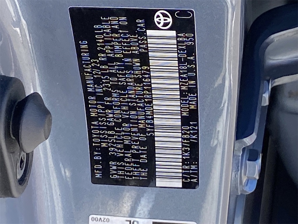 - VIN : 5YFB4MDE1RP116479