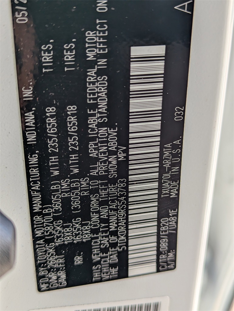 - VIN : 5TDKDRAH9RS543783