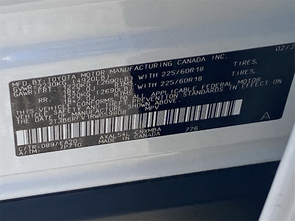 - VIN : 2T3B6RFV1RW059808