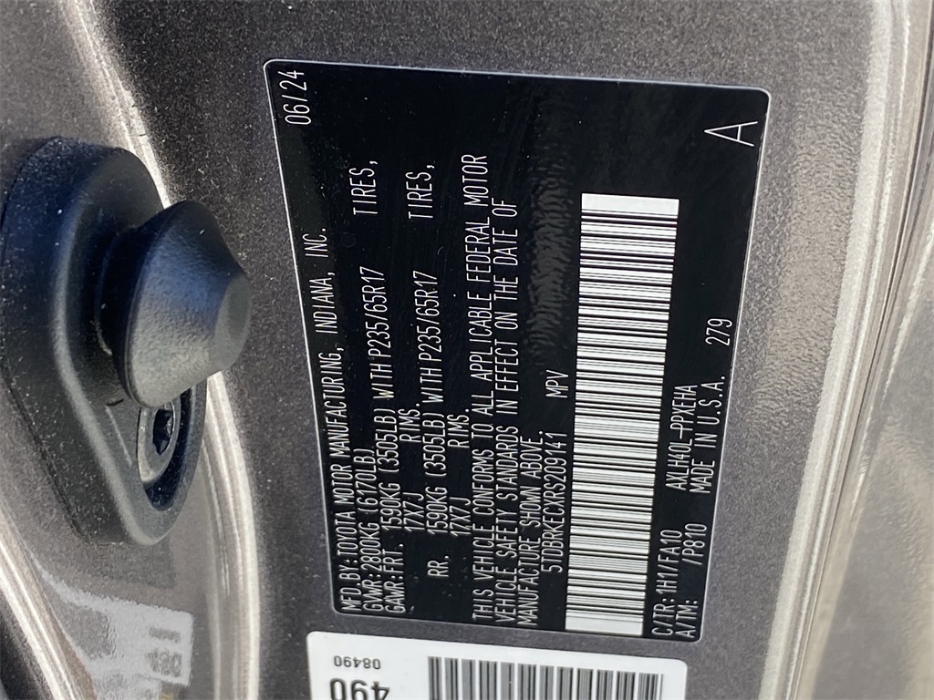 - VIN : 5TDBRKECXRS209141