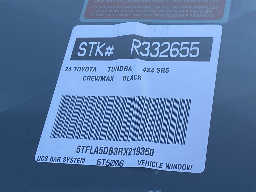 Looks and runs great. Good tires and brakes. Engine and transmission run smooth. Damage free. Immaculate inside and out. FREE CARFAX! We have great interest rate and financing for ALL credit situations.. Black 2024 Toyota Tundra SR5 4WD 10-Speed Automatic 3.4L V6 4WD, Black w/Fabric Seat Trim or SofTex Seat Trim or Fabric Seat Trim (FA).