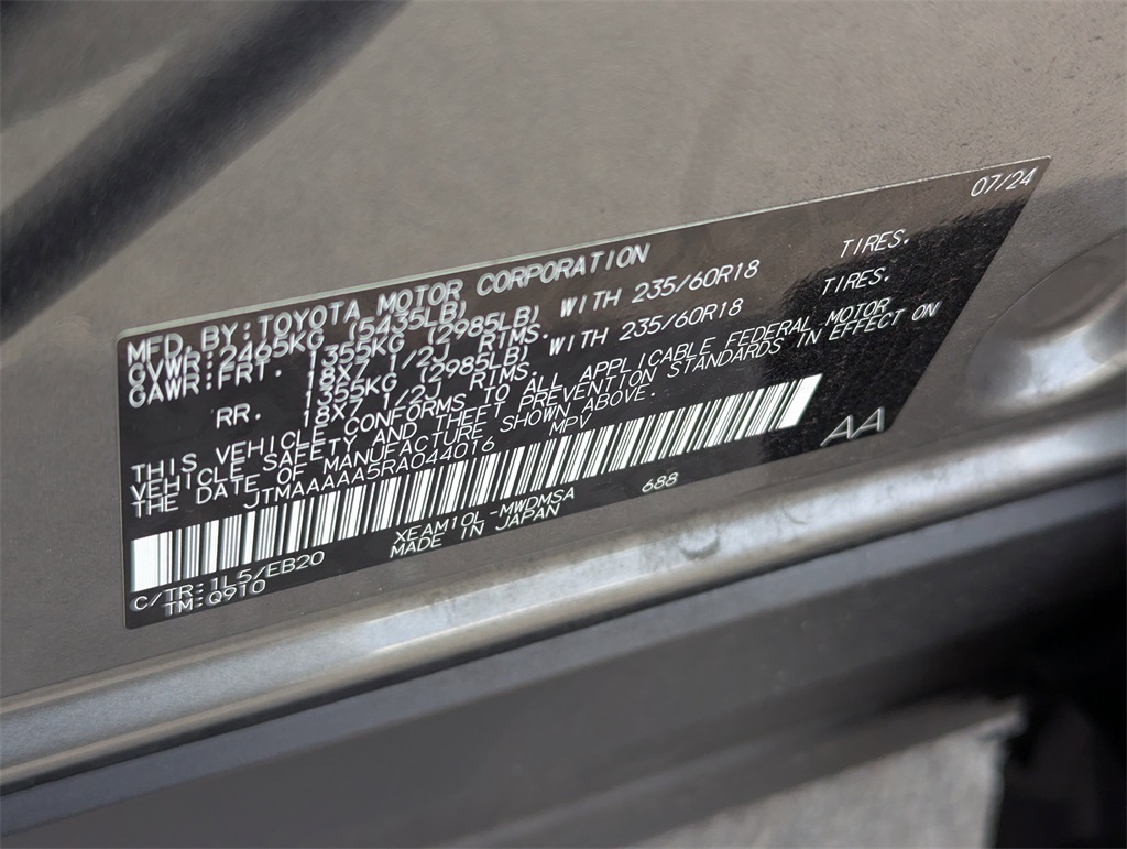 - VIN : JTMAAAAA5RA044016