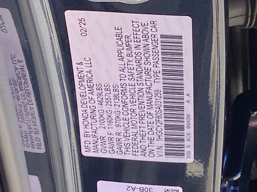 - VIN : 1HGCY2F80SA031259