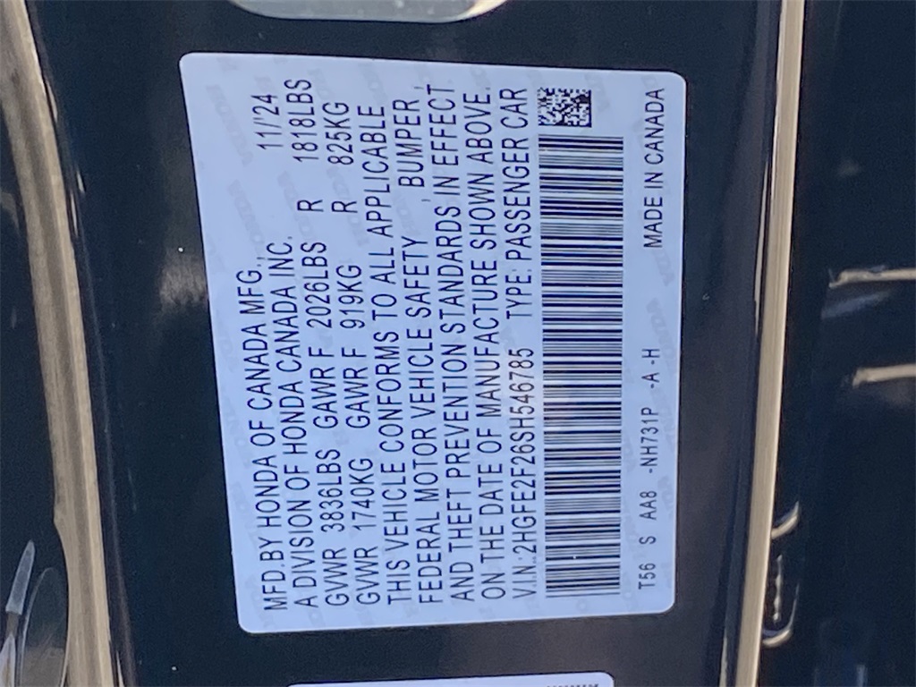 - VIN : 2HGFE2F26SH546785