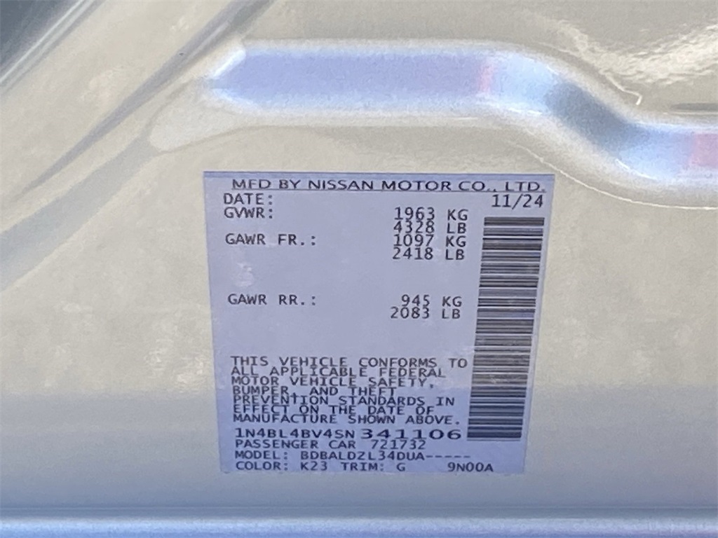 - VIN : 1N4BL4BV4SN341106