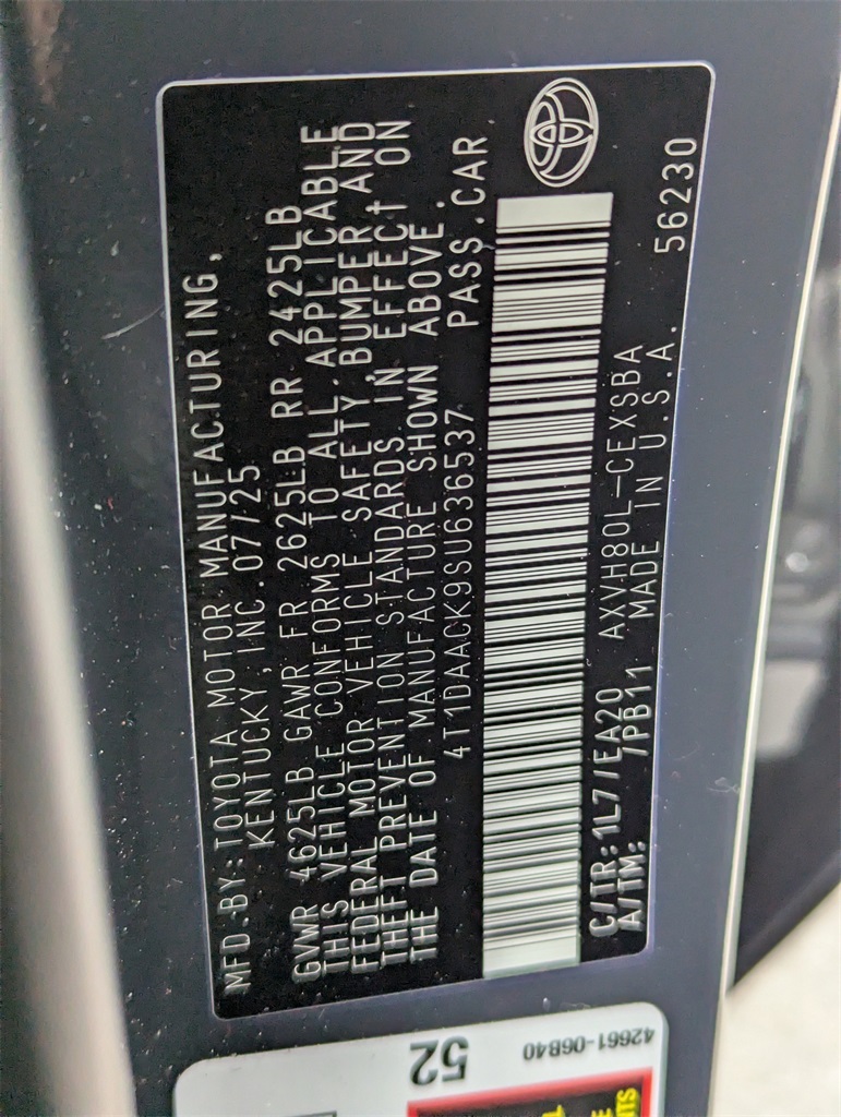 - VIN : 4T1DAACK9SU636537