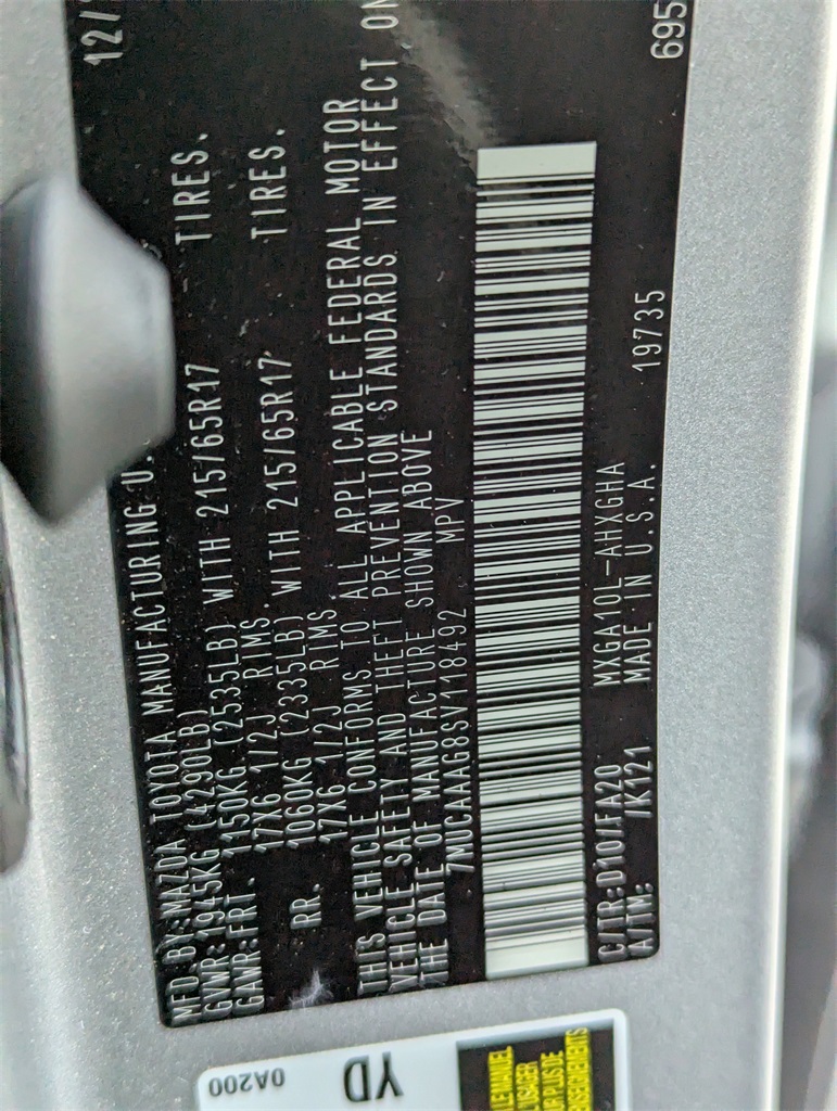 - VIN : 7MUCAAAG8SV118492