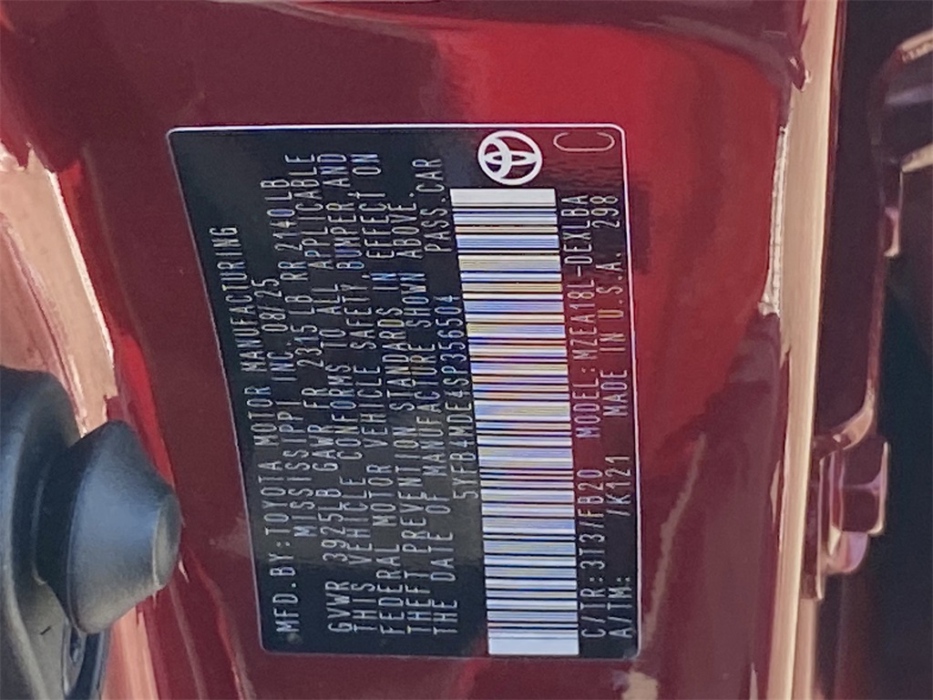 - VIN : 5YFB4MDE4SP356504