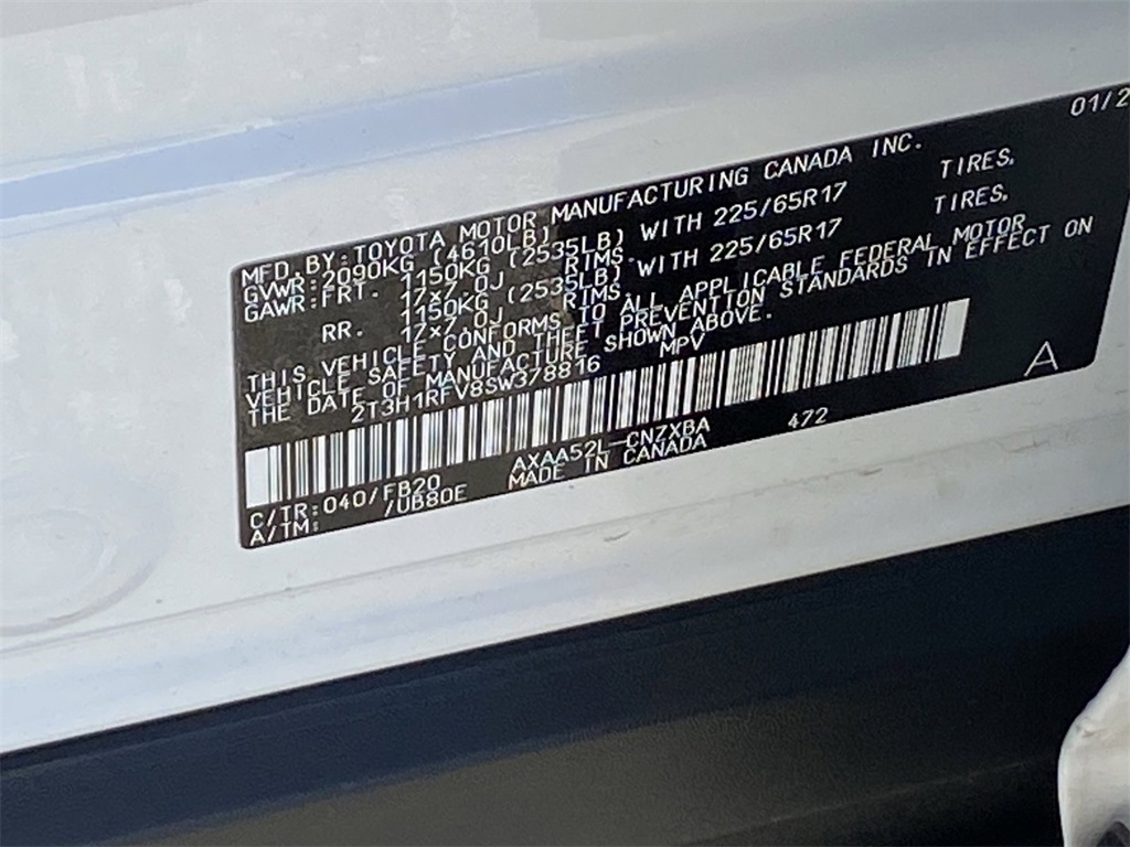 - VIN : 2T3H1RFV8SW378816