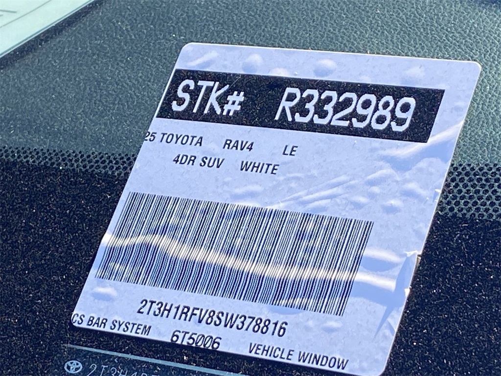 Looks and runs great. Good tires and brakes. Engine and transmission run smooth. Damage free. Immaculate inside and out. FREE CARFAX! We have great interest rate and financing for ALL credit situations.. White 2025 Toyota RAV4 LE FWD 8-Speed Automatic 2.5L 4-Cylinder DOHC Dual VVT-i Black Cloth.