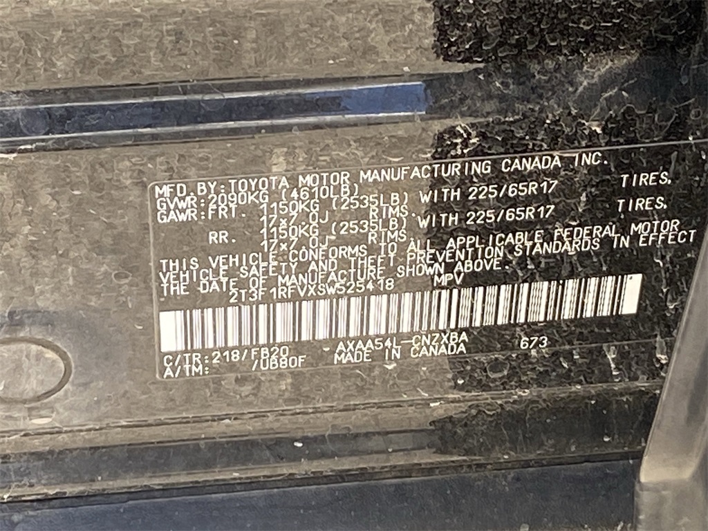 - VIN : 2T3F1RFVXSW525418