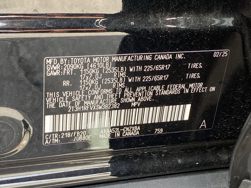 - VIN : 2T3H1RFVXSW382382