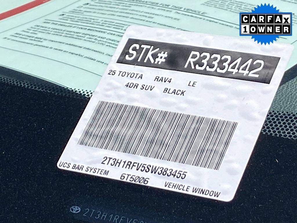 Looks and runs great. Good tires and brakes. Engine and transmission run smooth. Damage free. Immaculate inside and out. FREE CARFAX! We have great interest rate and financing for ALL credit situations.. Black 2025 Toyota RAV4 LE FWD 8-Speed Automatic 2.5L 4-Cylinder DOHC Dual VVT-i Black Cloth.