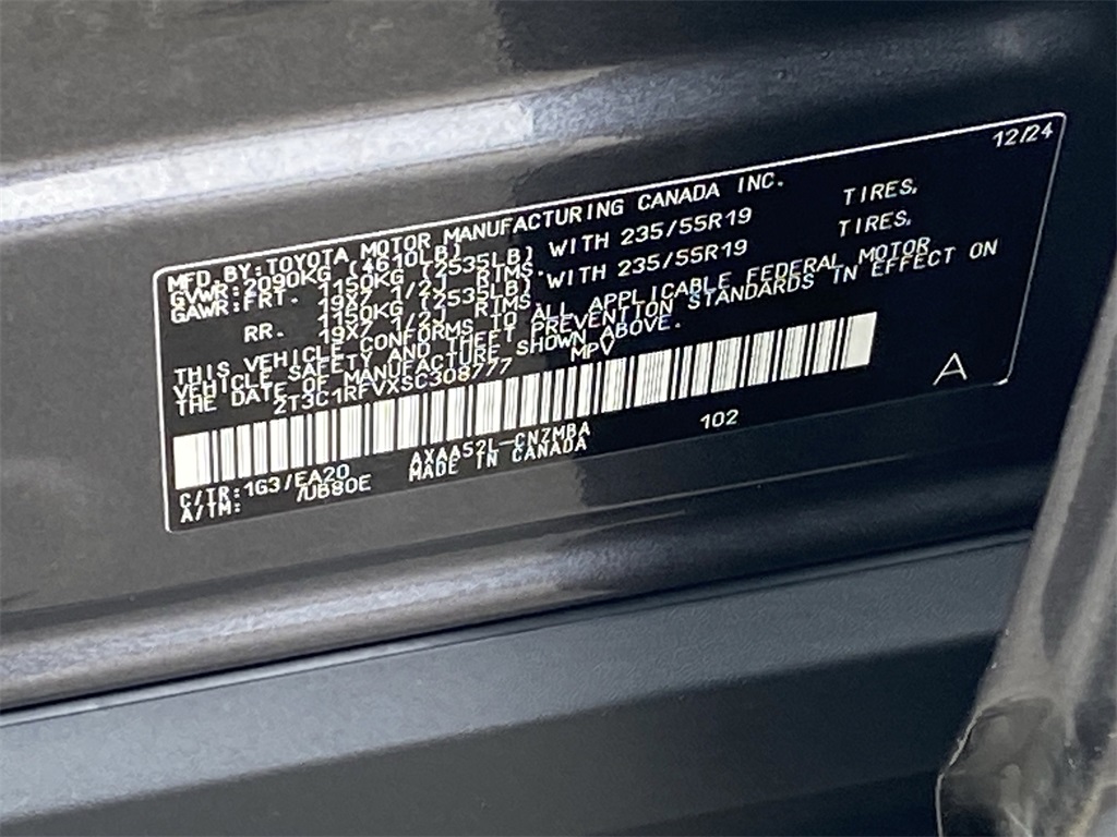 - VIN : 2T3C1RFVXSC308777