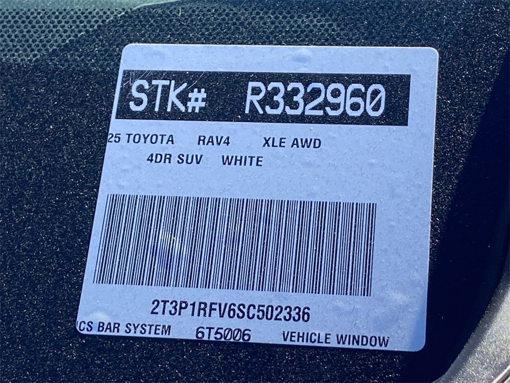 Looks and runs great. Good tires and brakes. Engine and transmission run smooth. Damage free. Immaculate inside and out. FREE CARFAX! We have great interest rate and financing for ALL credit situations.. White 2025 Toyota RAV4 XLE AWD 8-Speed Automatic 2.5L 4-Cylinder DOHC Dual VVT-i AWD, Black Cloth, Convenience Package, Front Door Smart Key System w/Push Button Start, Tilt & Slide Moon Roof.