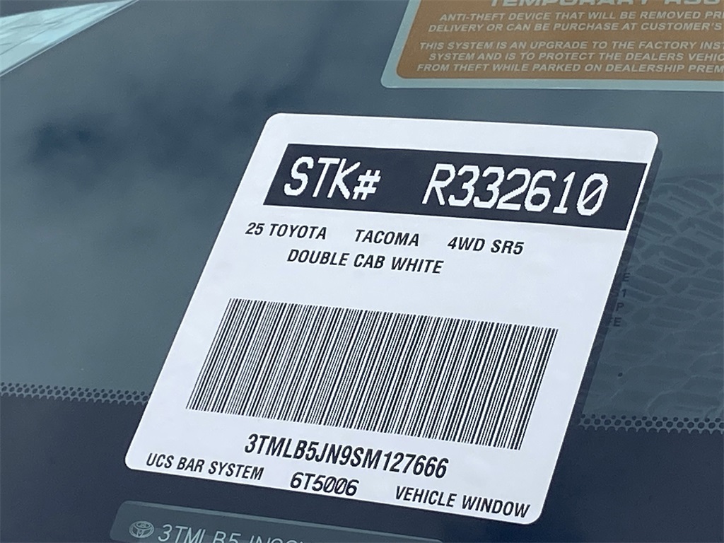 Looks and runs great. Good tires and brakes. Engine and transmission run smooth. Damage free. Immaculate inside and out. FREE CARFAX! We have great interest rate and financing for ALL credit situations.. White 2025 Toyota Tacoma SR5 4WD 8-Speed Automatic 2.4L 4-Cylinder 4WD.