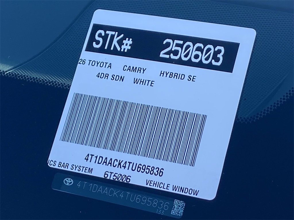 Looks and runs great. Good tires and brakes. Engine and transmission run smooth. Damage free. Immaculate inside and out. FREE CARFAX! We have great interest rate and financing for ALL credit situations.. White 2026 Toyota Camry SE FWD eCVT 2.5L 4-Cylinder 16V DOHC Boulder Cloth.
