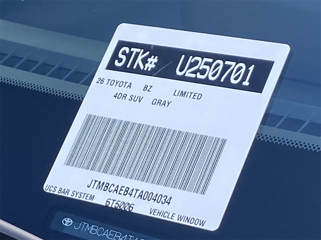 Looks and runs great. Good tires and brakes. Engine and transmission run smooth. Damage free. Immaculate inside and out. FREE CARFAX! We have great interest rate and financing for ALL credit situations.. Heavy Metal 2026 Toyota bZ Limited FWD Single-Speed Automatic Electric Motor