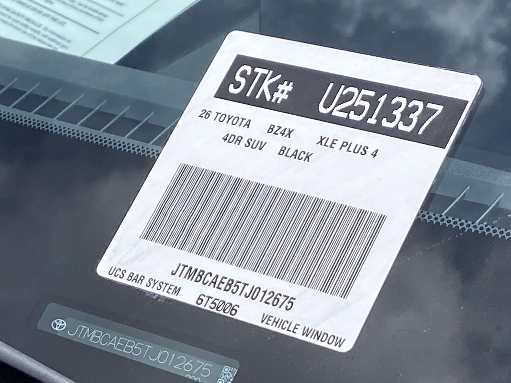 Looks and runs great. Good tires and brakes. Engine and transmission run smooth. Damage free. Immaculate inside and out. FREE CARFAX! We have great interest rate and financing for ALL credit situations.. Midnight Black Metallic 2026 Toyota bZ XLE Plus FWD Single-Speed Automatic Electric Motor